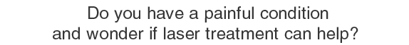 What is Cold Laser treatment? How does the laser light work? Red and near infrared light are focused in a cold laser and applied through the skin to an injured area. The body's natural healing response, a photochemical reaction at the cellular level, is stimulated, and in many cases, it heals faster and better than without the laser. Cold Laser therapy is safe and effective for decreasing pain and healing many conditions.  It's painless! Since near infrared light waves penetrate the deepest of all the visible light waves, cold laser therapy optimizes the positive healing effects in the body. Such as:  | Relieves acute and chronic pain |  | Rapid cell growth and strength of tissue repair |  | Increases blood supply specific enzymes, greater oxygen to blood cells and more effective immune response |  | Stimulates nerve reconnection for numb areas |  | Faster wound healing. Reduction of scar tissue following tissue damage from cuts, scratches, burns, or following surgery. |  | Helps develop collagen and muscle tissue |  | Helps generate new and healthy cells and tissue |  | Promotes faster wound healing and clot formation |  | Reduces inflammation (swelling) of bruising or joints | Does Laser therapy cause side effects? Laser therapy does not cause side effects. In the clinical trials which can be found in the up-to-date clinical literature, no side-effects were ever observed during or after the treatment. |
